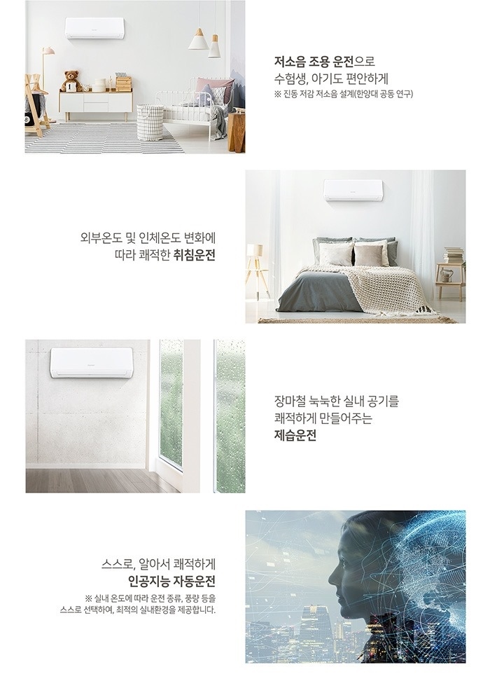 벽걸이는 저소음으로 조용하고 아무도 듣지못하게 설치할 수 있습니다. 캐리어 제품으로해서 끓어오르는 스타일과 디자인을 이용해서 쾌적하게 취침운전을 할 수 있고 제습운전으로 습기없이 이용할 수 있습니다.인공지능으로 사용자들에게 아주 효율성을 높여줄 수 있는 디자인으로해서 캐리에 냉온풍기렌탈을 할 수 있습니다.