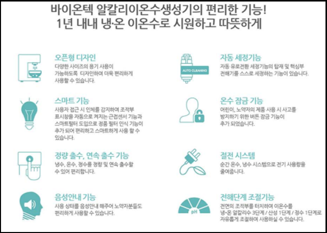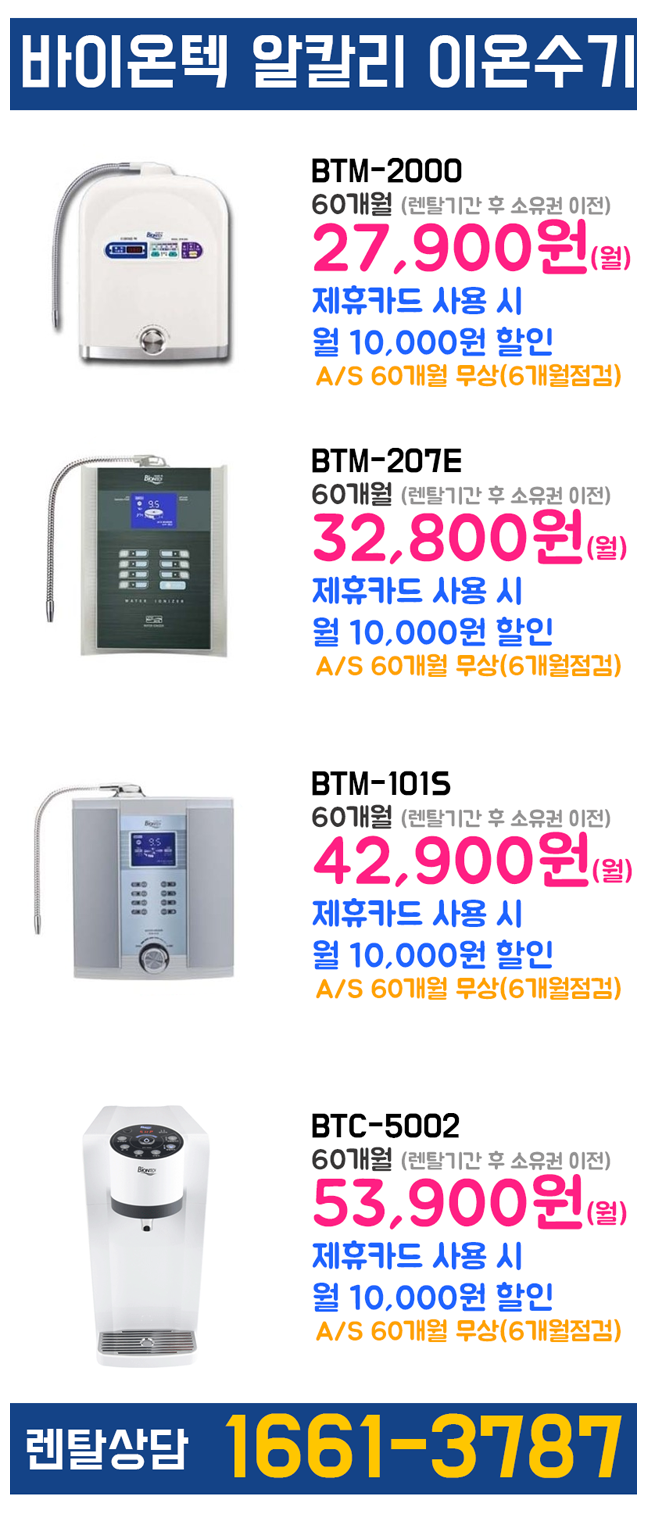 또 바이온텍의 알칼리이온수기렌탈제품의