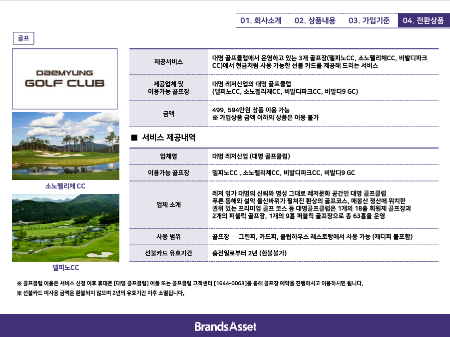 공연과 리조트 이용, 골프 등등 대명만 가능한