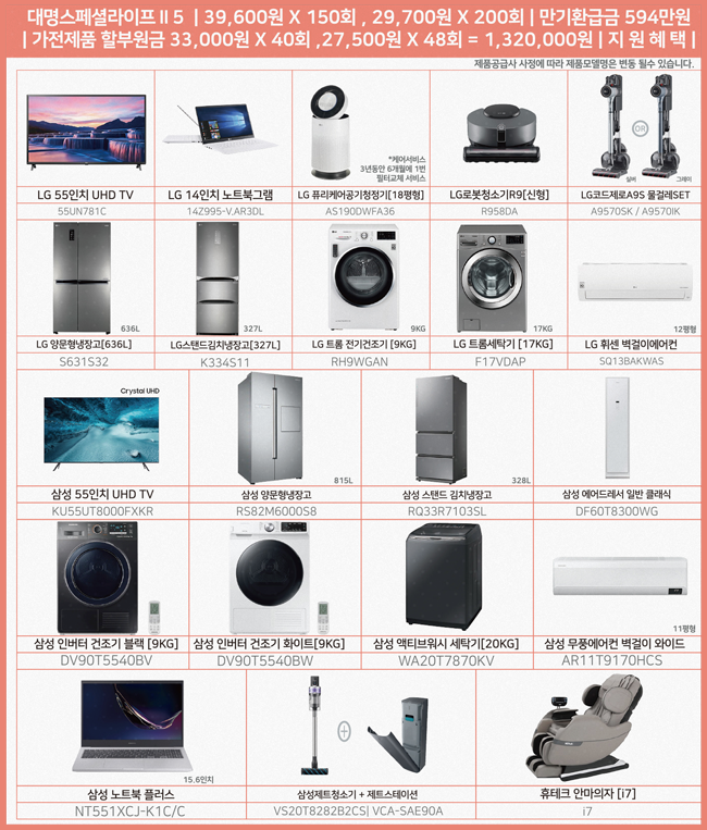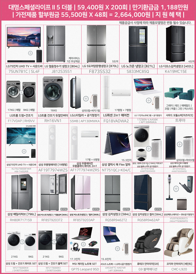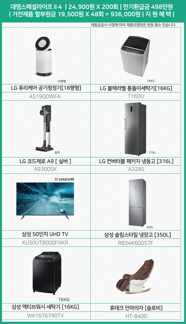 상조가전제품 대명아임레디 안마의자 등등 선택하기