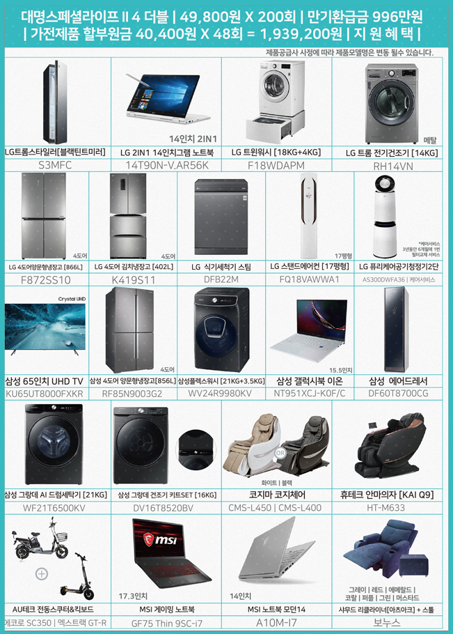 안마의자, 노트북 등의 상조가전제품지원까지!