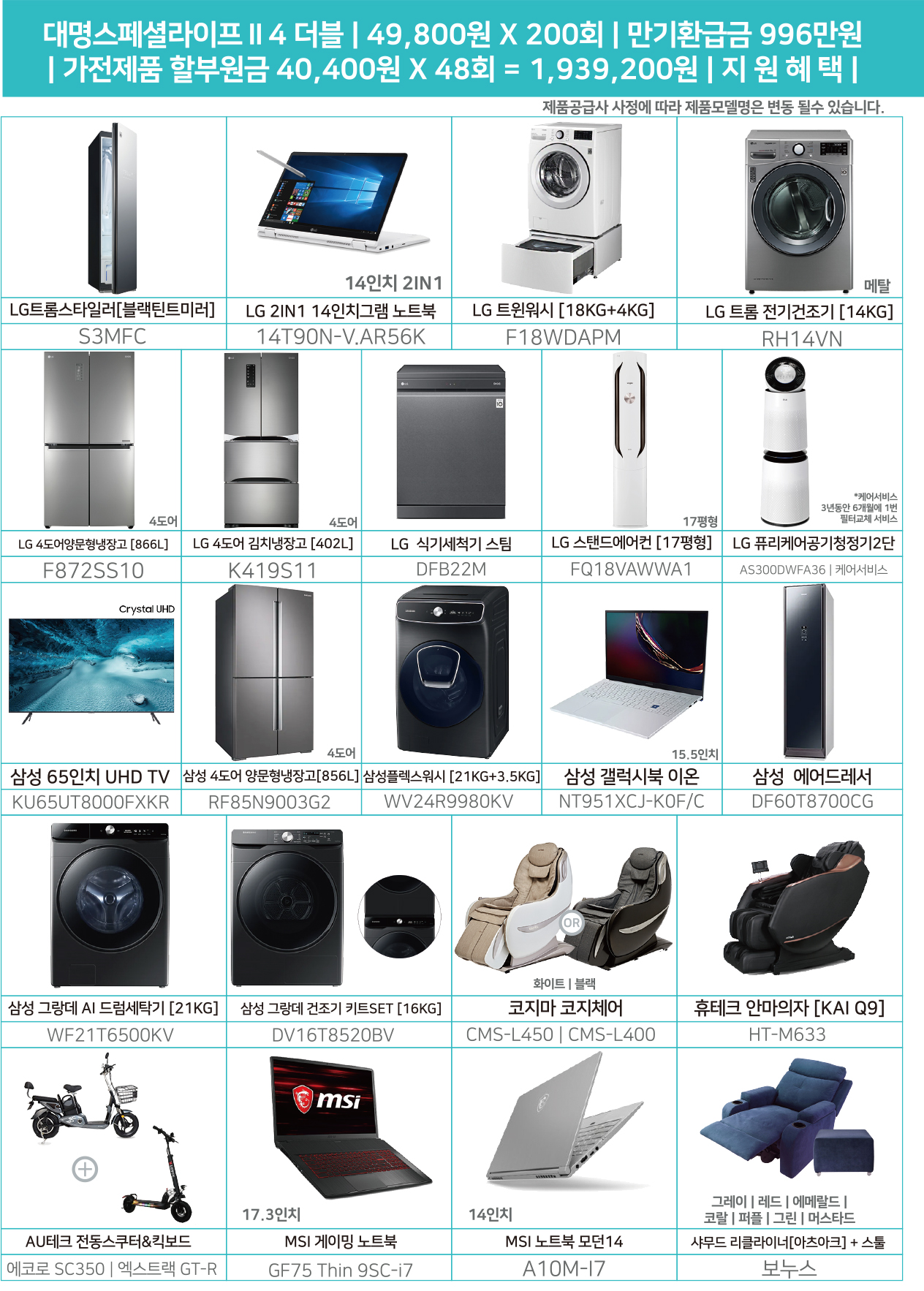 프리미엄 대형 가전제품을 지원해주는데요