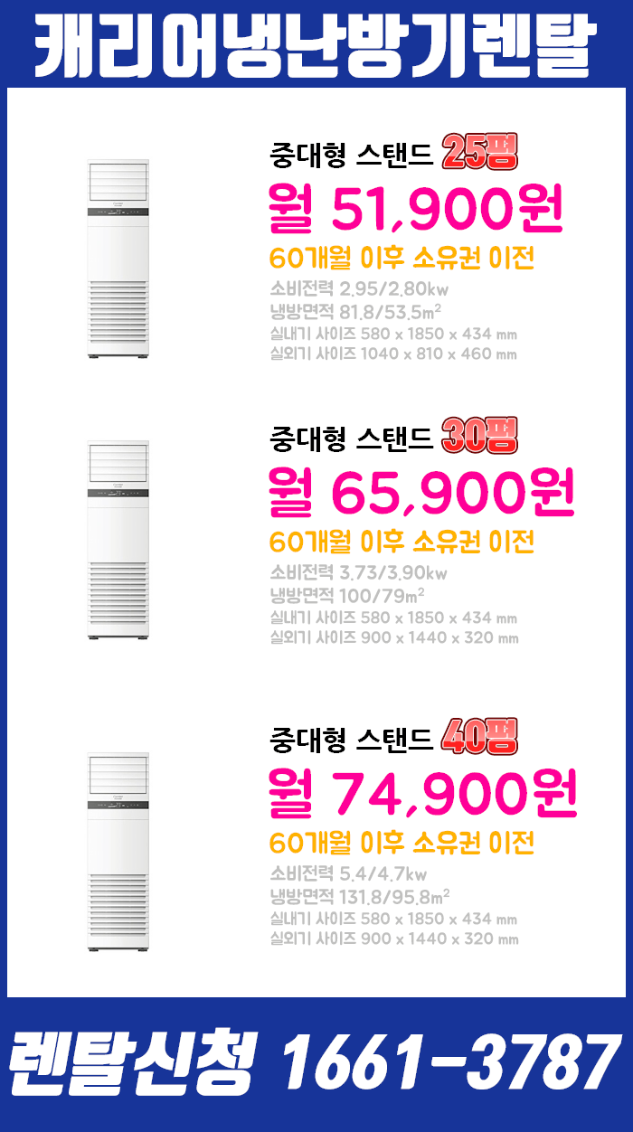 냉온풍기렌탈은 23평, 16평, 25평, 40평 등