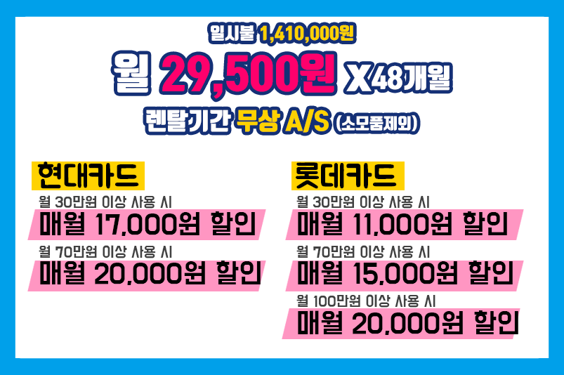 각각 월 29,500원, 두번째도 동일하게 월 29,500원에 렌탈하실수 있구요