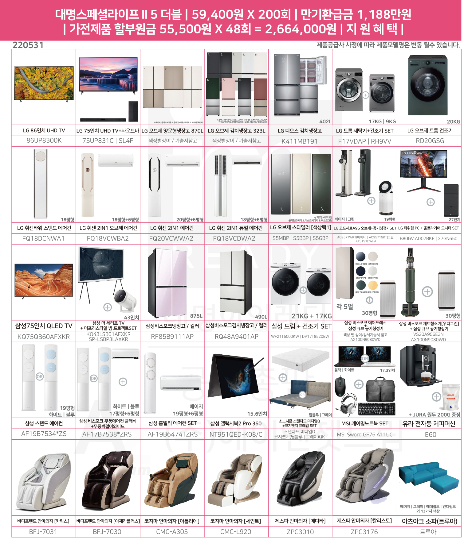상조회사추천 대명상조로 가전제품지원은 노트북 안마의자 김치냉장고.