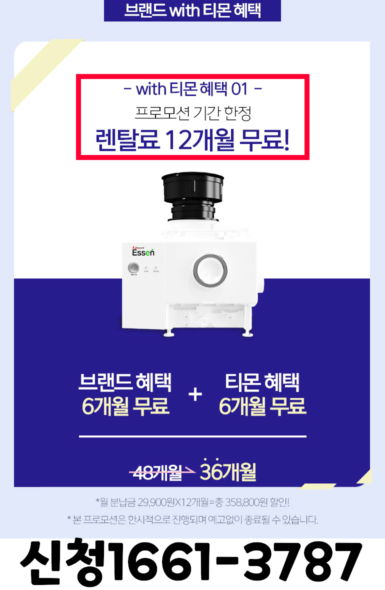 싱크대 음식물처리기렌탈 에쎈12개월 순간이벤트!