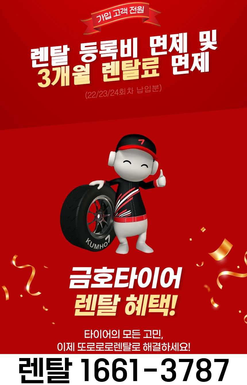 국산차타이어교체시에 금호타이어렌탈로 무료사용 혜택까지~