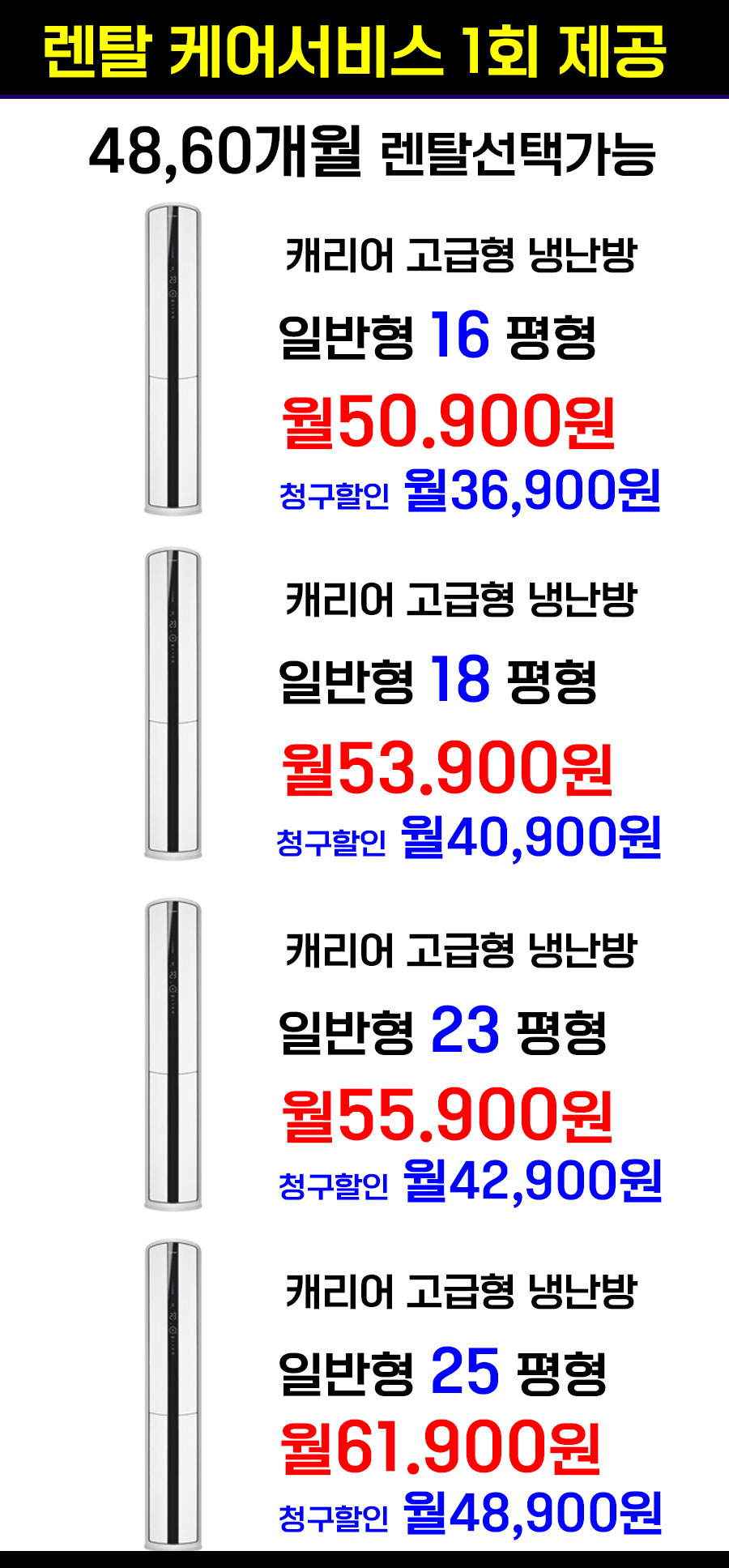 캐리어제품으로 냉온풍기렌탈을