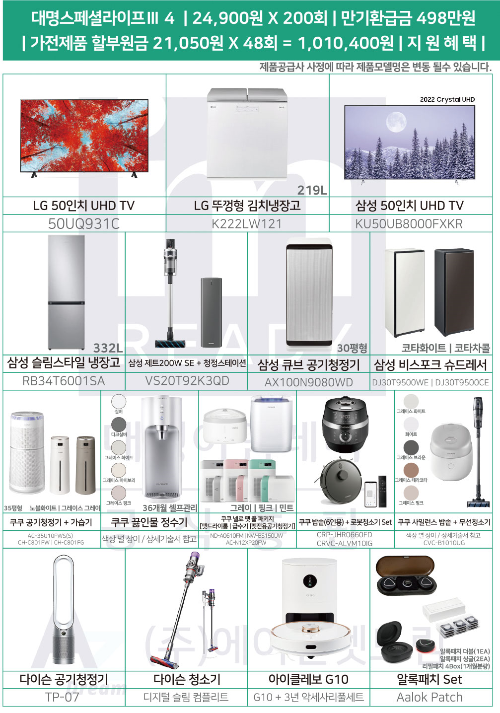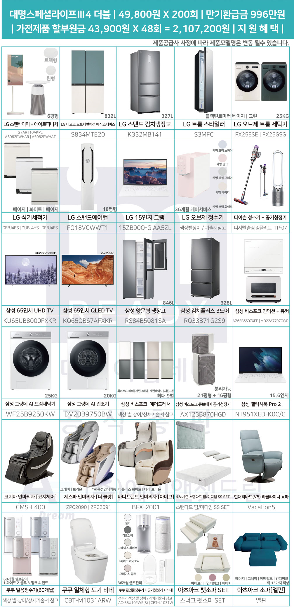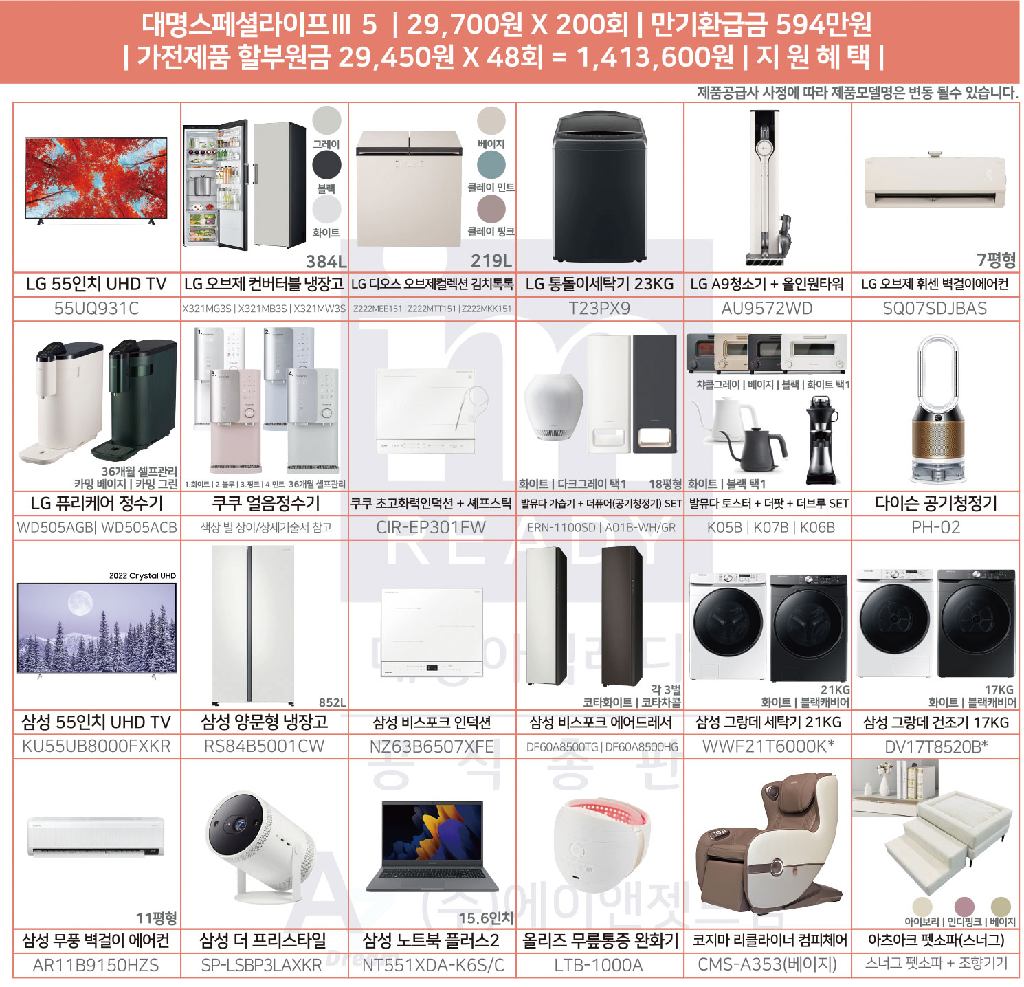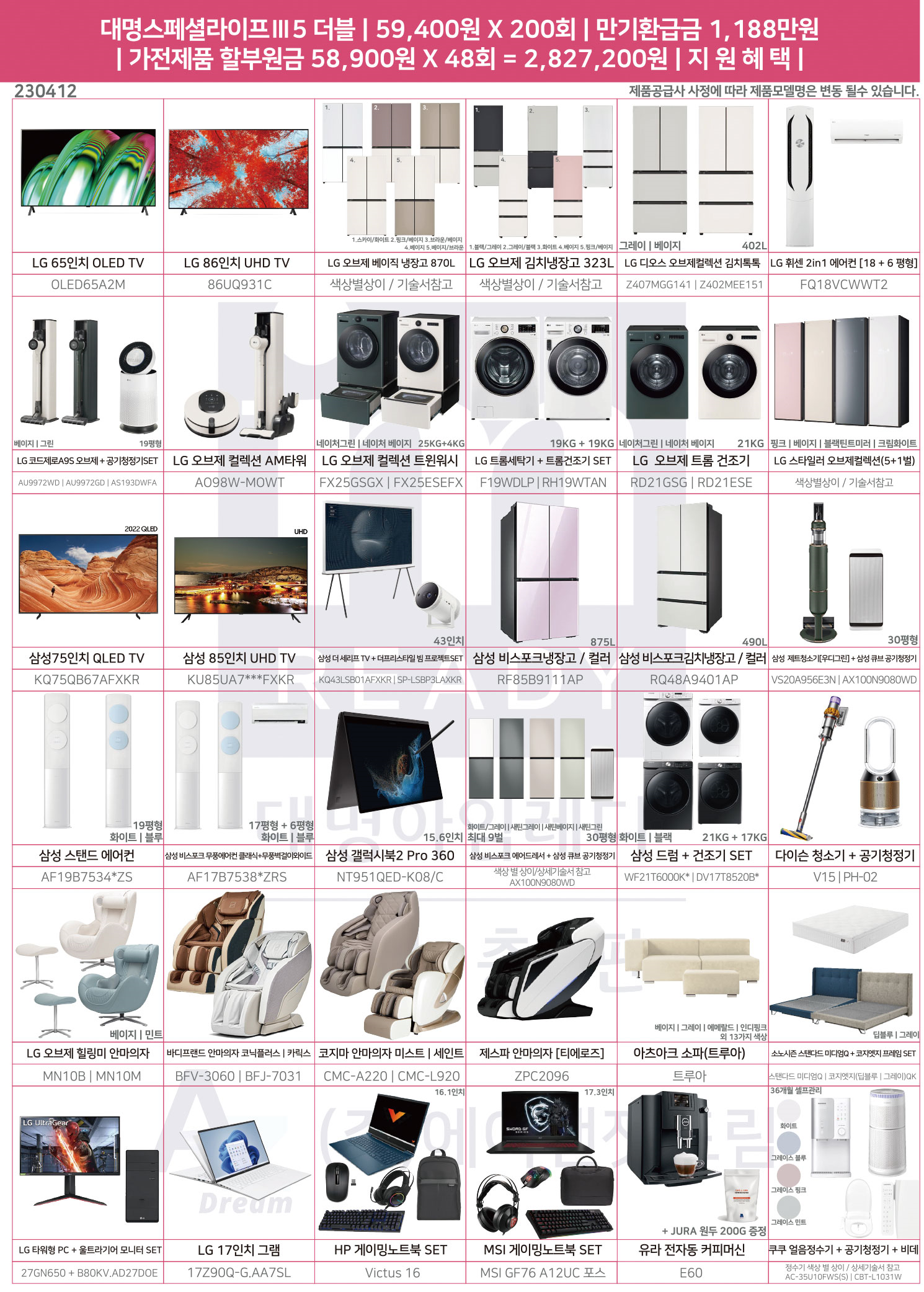 대명라이프 상조가전 에어컨 냉장고 tv 노트북 세라젬 제품까지 한번에