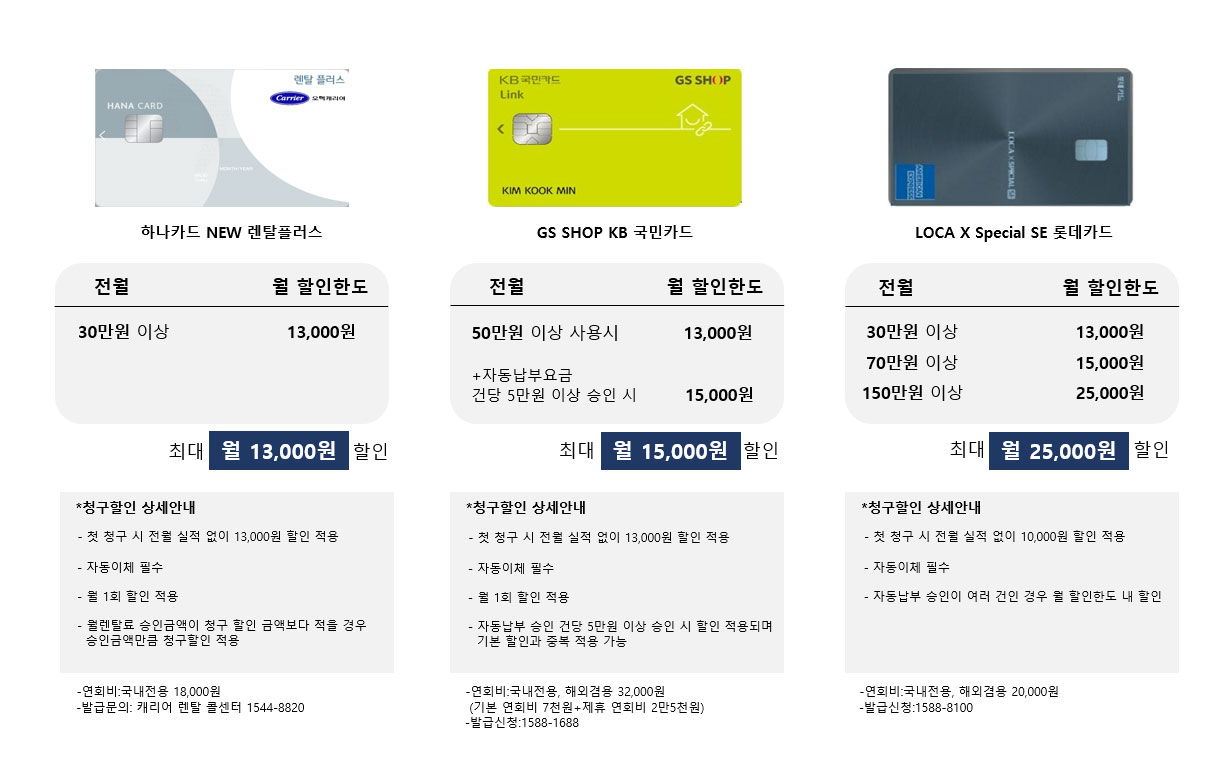 15000원 25000원까지 청구할인 받을 수 있습니다.