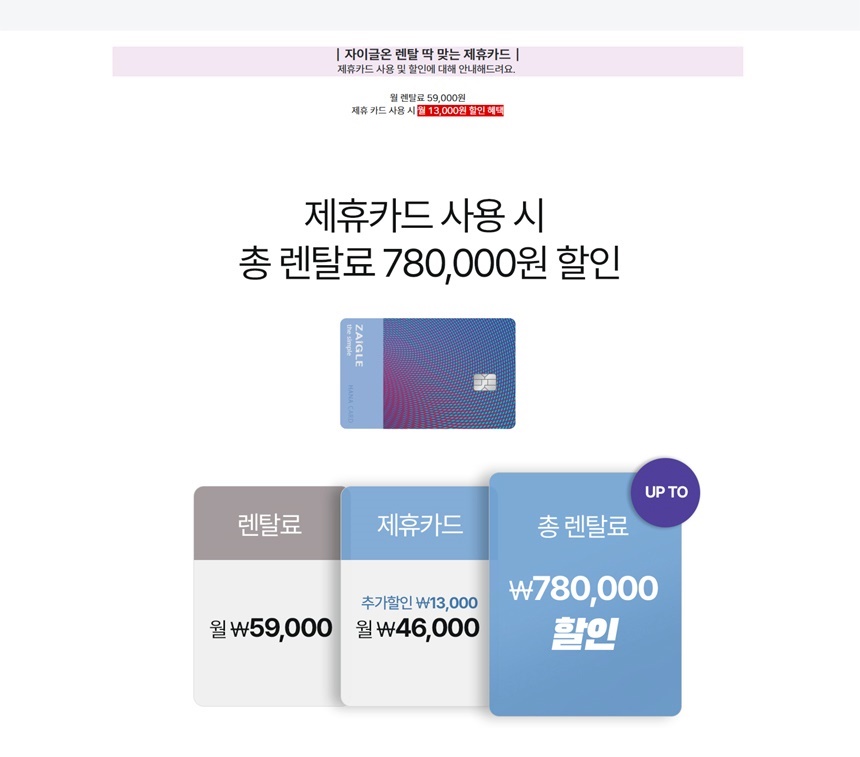 초기 비용 부담 없이 월 59,000원(제휴카드 사용 시 월 46,000원)